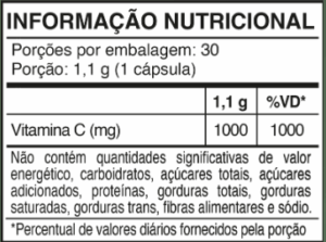 Suplemento alimentar em cápsulas com alta concentração de vitamina C.
