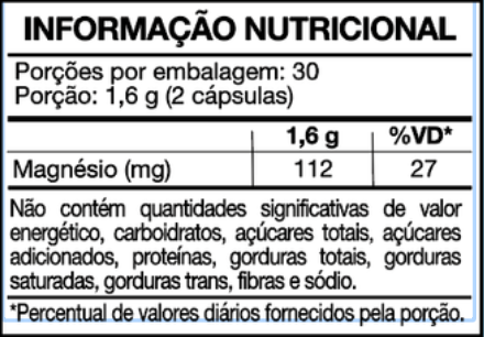Sua fórmula reúne um nutriente essencial com funções reconhecidas, como o magnésio, que auxilia no funcionamento muscular e neuromuscular e participa do funcionamento do sistema nervoso.